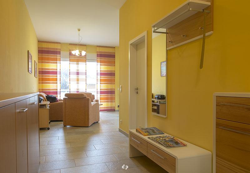 Die Ferienwohnung SONNENSEGEL liegt im Erdgeschoss einer zur beliebten Ferienwohnungsanlage “Käpt’n Brass” gehörenden Neubau-Villa. Sie verfügt über ein Schlafzimmer mit genügend Stauraum für Gepäck, ein gemütliches Doppelbett und ausklappbares Schrankbett. Ein weiterer Gast findet auf der Ausziehcouch im Wohnbereich Platz. Das Herzstück der hellen Wohnung ist der offen gestaltete Wohn- und Essbereich, in dem Sie die gemeinsame Zeit im Urlaub intensiv auskosten können. Die moderne Einbauküche ist mit allen notwendigen Geräten ausgestattet. Bei der Selbstversorgung müssen Sie also nicht auf Ihre Lieblingsgerichte von Zuhause verzichten. Am großen Esstisch finden ohne Probleme vier Gäste Platz. Bis zu zwei Personen können auch auf dem Balkon essen. Im Wohnbereich finden Sie, abgesehen von der gemütlichen Schlafcouch, zwei Sessel für gemütliche Abende. Das Badezimmer ist mit einer Dusche, Waschplatz und Handtuch-Heizkörper ausgestattet. Das WC befindet sich in einem abgetrennten Bereich.
